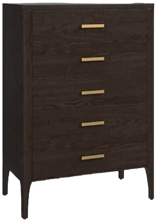 The MODERN Rivoli Five-Drawer Chest dresser exudes elegance and minimalism, allowing it to enhance nearly any decor. The oak, which has a multi-step dimensional finish, comes in either Lyon brown or Normandy grey. Soft, self-closing mechanisms keep drawers neatly closed, and the ribbed, metallic hardware offers beautiful finishing touches.Read More