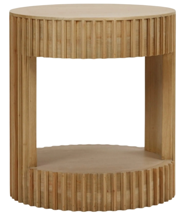 The Kraton small side table is a handcrafted accent that blends architectural charm with compact elegance. it features a round tabletop and a minimalist silhouette perfect for layering beside a lounge chair, sofa, or bed.Read More