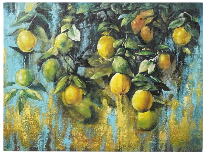 The Lemon Tree wall art is a handcrafted botanical canvas that celebrates the sunny charm of citrus groves. With its vibrant yellow lemons and lush green foliage, this piece evokes a mediterranean warmth perfect for kitchens, dining rooms, or gallery-style vignettes.Read More