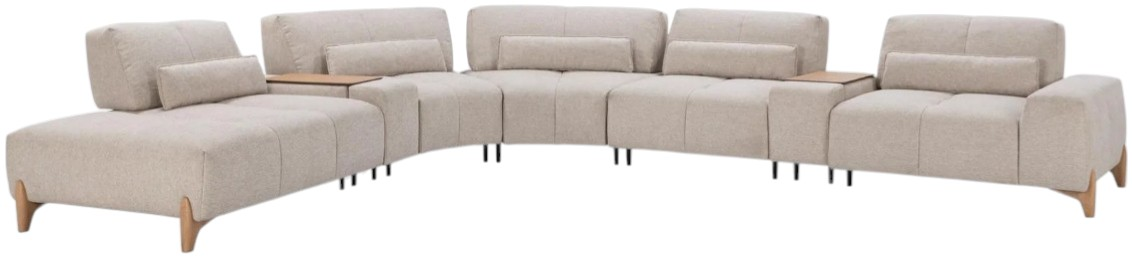 Supported by sleek wooden legs, this sectional blends timeless sophistication with functional design, making it a striking centerpiece that elevates any living space with warmth and enduring quality.