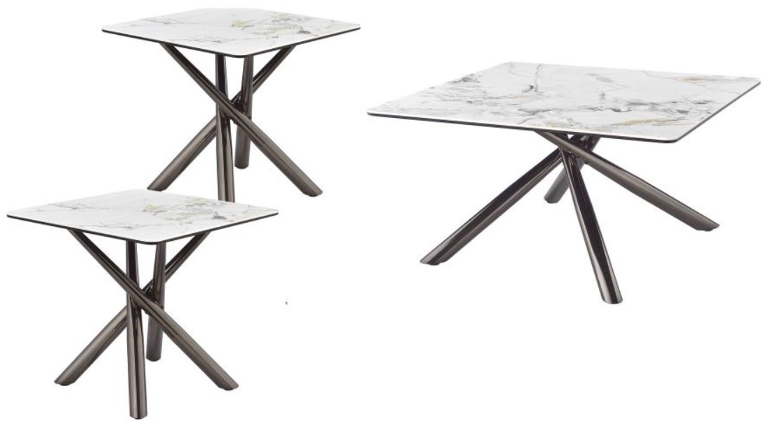 The Coaster® Carvell 3-Piece Mirage White Occasional Table Set includes a coffee table and an end table, both featuring a clean white surface and a sleek black nickel base. These tables offer a sophisticated, modern look, providing both style and practicality for any living room or space.Read More