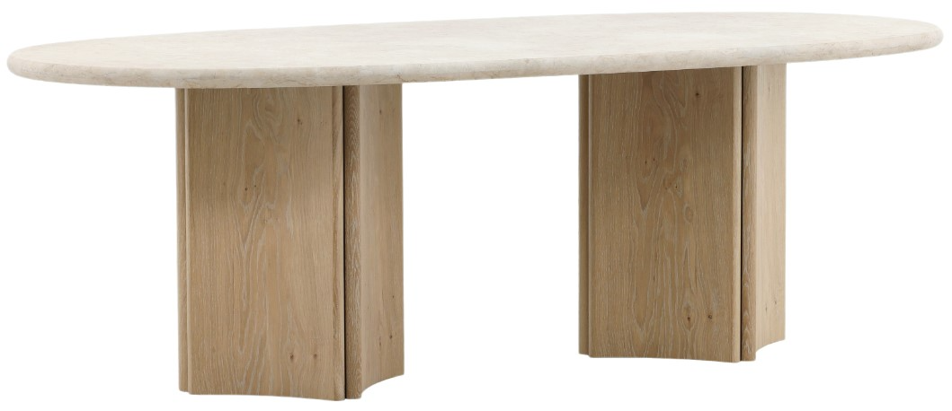The Dovetail Furniture Oja Dining Table features an oval cream marble top paired with a natural wash oak base, highlighting the wood’s grain. Its clean lines and neutral tones offer a refined, organic look. This versatile piece adds understated elegance to dining rooms, blending seamlessly with various interior styles.Read More