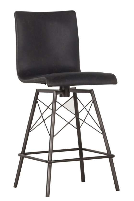 Midcentury styling brings beauty to the bar or breakfast nook. Modern S-curves in distressed black leather swivel 360 degrees above an architectural, black-waxed iron base. And this will be a great fit into our home.Read More