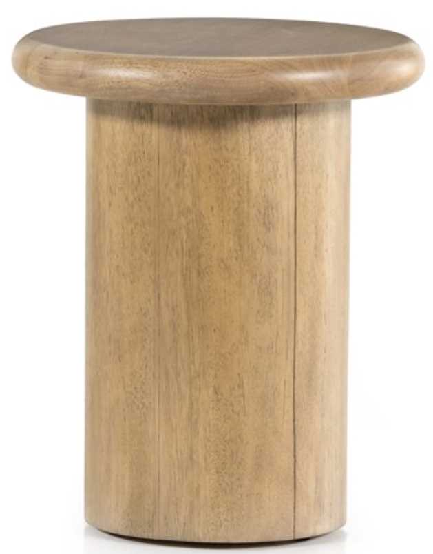 Turn up the volume. A cylindrical pedestal-style base of solid burnished parawood supports a rounded tabletop with bullnose edging, for style and softness alike. Perfect addition to any space and is sure to elevate the appearance of your room interiors.Read More