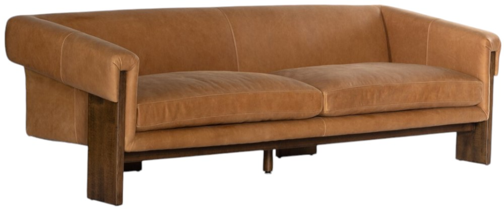 A silhouette that commands attention from all angles. Inspired by vintage Brazilian designs, wide plank legs form an architectural frame for floating cushion seats. Tight upholstered back with wraparound arms and plush feather-blend cushions.Read More