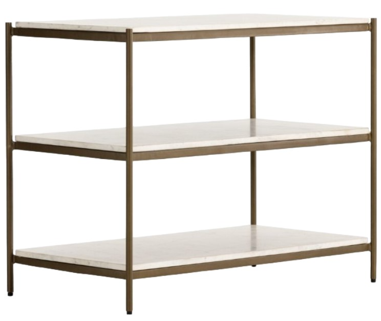 Add a pop of sophistication to any space. Classic white marble lays three spacious tiers of smooth shelving for generous surface area, while antique brass-finished iron framing places a feminine spin on bedside storage.Read More