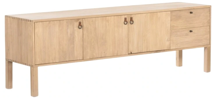Beautifully simple in spirit. Solid dry-washed poplar forms a clean-lined media console with dovetail joinery plus iron and leather hardware, for a fresh, material-driven update to Shaker-inspired styling. Rear cutouts for cord management.Read More
