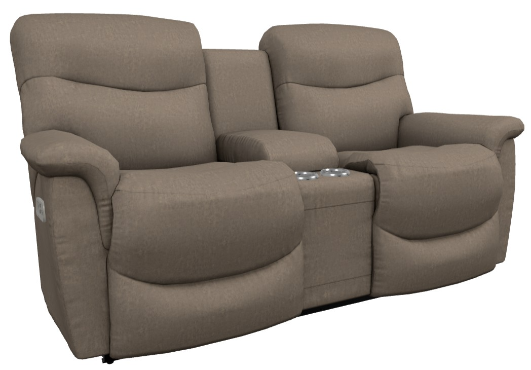 The roomy James Power Reclining Loveseat with Headrest and Lumbar has cozy cushioning and laid-back style. Plush bucket chaise seats, pillowy backs and armrests, and power-adjustable head-to-toe support let you refine comfort in this haven for two!Read More