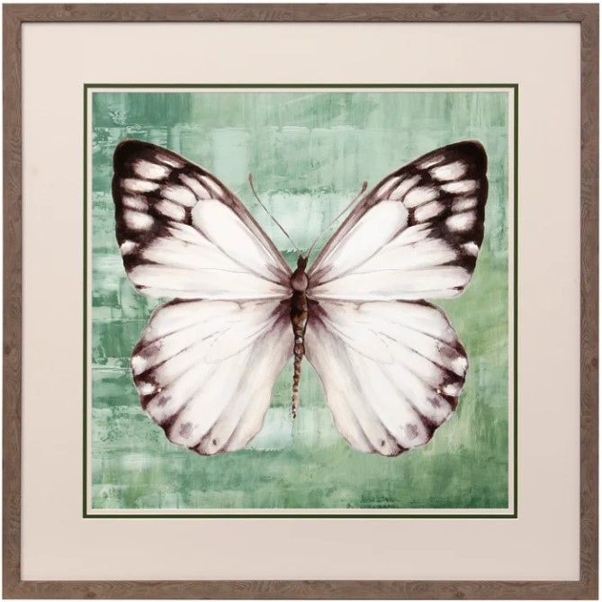 Elevate your space with our captivating "Green Butterfly I" framed print under glass. Measuring 34in x 34in, this exquisite artwork brings nature's beauty indoors, adding a touch of elegance and serenity to any room. Experience the allure of nature in your home today.Read More