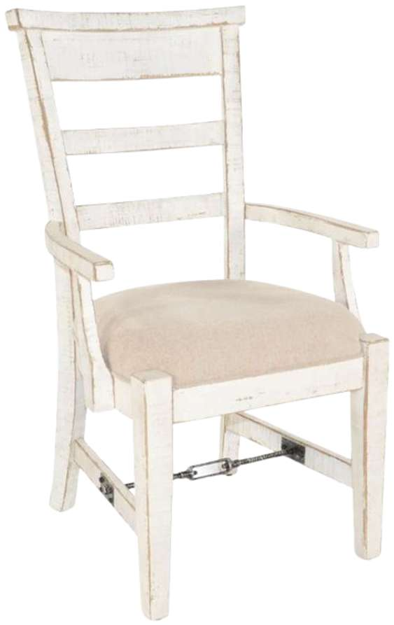 This sturdy Marina dining arm chair was built with distressed mahogany solids. The turnbuckle accents add a rustic touch. Elevate your room design by incorporating this dining chair into your room.Read More